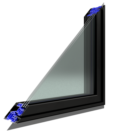 This high-energy efficient window features extruded aluminum profiles interior and exterior connected to the thermal insulation system “Performance Core,” representing the core of the window.