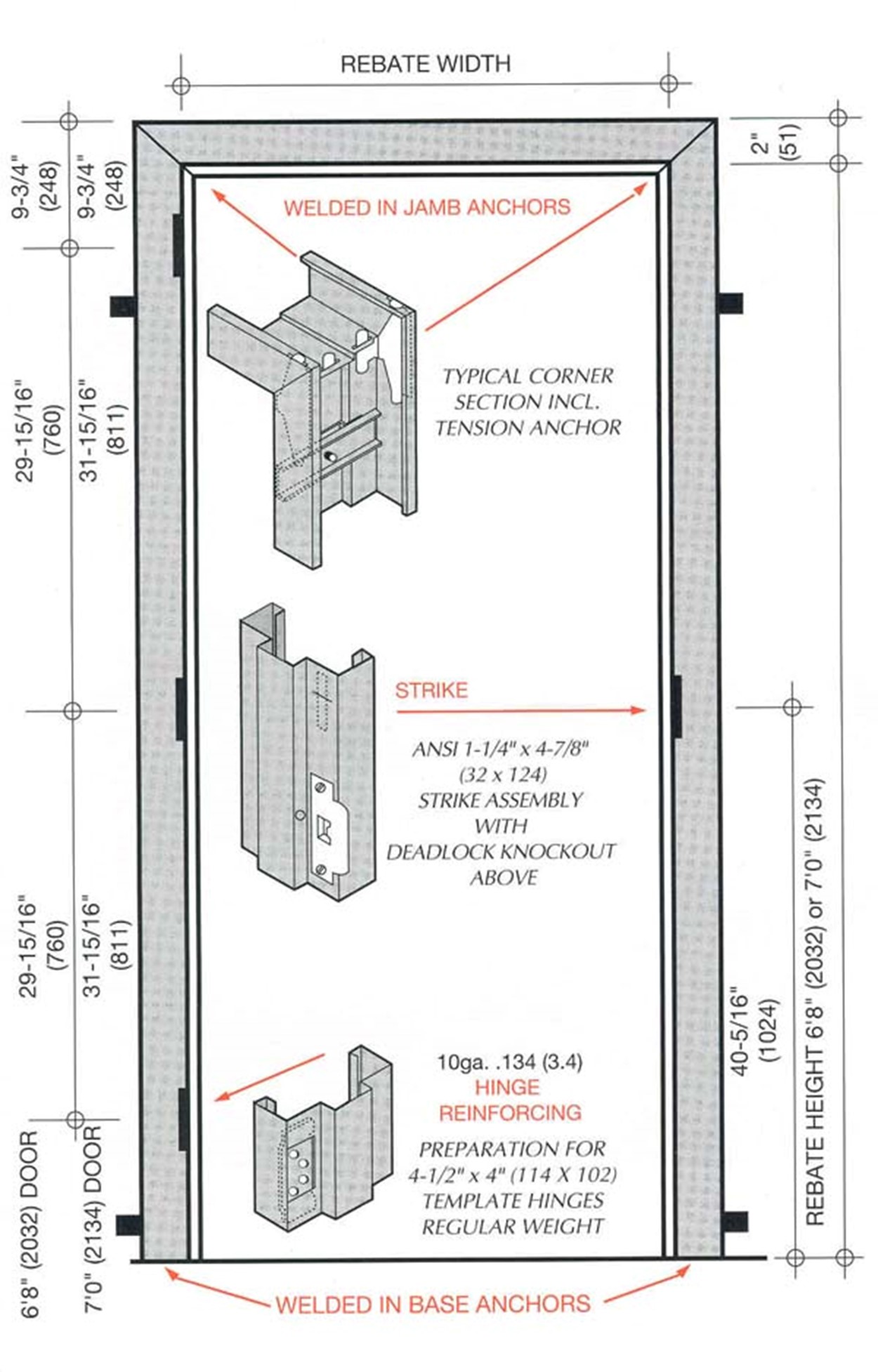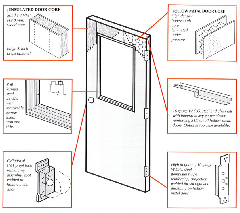 Top and bottom of door have 16-gauge steel end channel projections welded on. Hinge and lock edges have vertical, mechanically inter-locking seams and are sealed in RRPC 3 adhesive.